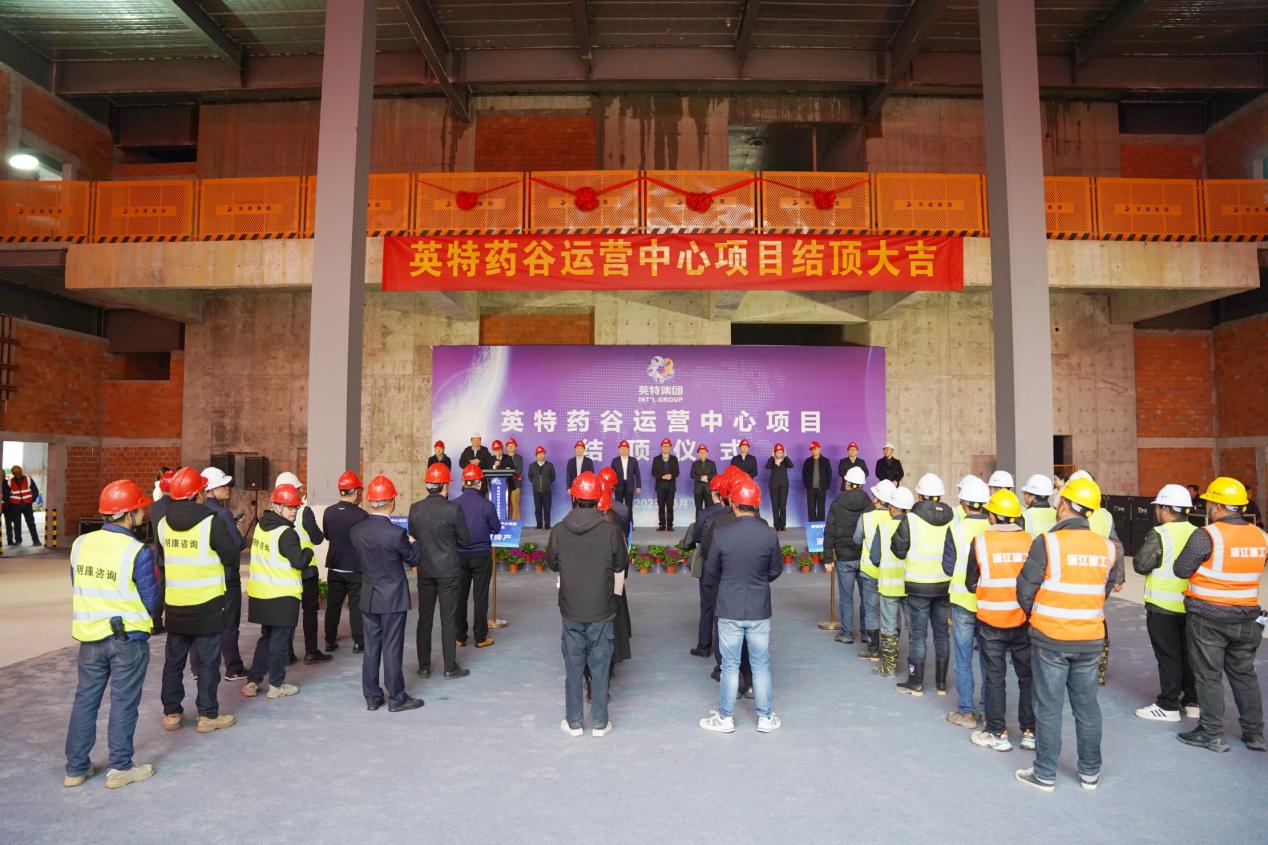 3月21日,英特藥谷運營中心項目結頂儀式順利舉行。省國貿集團黨委委員、董事、副總經理黃道領,浙江省醫藥行業協會執行會長姜巨舫,拱墅區政府相關部門領導,英特集團黨委書記、董事長應徐頡等建設單位領導出席本次活動,與委托管理單位、施工單位、設計院、監理公司、勘察院代表共同見證英特藥谷運營中心的結頂。