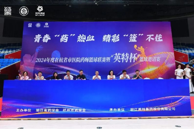 青春“藥”熱血,精彩“籃”不住。6月16日,由浙江省藥學(xué)會(huì)、杭州市藥學(xué)會(huì)主辦,英特集團(tuán)承辦的2024年度在杭省市醫(yī)院藥師籃球聯(lián)賽暨“英特杯”籃球邀請(qǐng)賽開(kāi)幕式在杭州體育館隆重舉行。浙江省藥學(xué)會(huì)副理事長(zhǎng)兼秘書(shū)長(zhǎng)王志安、副秘書(shū)長(zhǎng)王建平,杭州市藥學(xué)會(huì)副理事長(zhǎng)兼秘書(shū)長(zhǎng)王剛,在杭省市醫(yī)院藥劑科負(fù)責(zé)人,英特集團(tuán)總經(jīng)理汪洋,黨委副書(shū)記、工會(huì)主席李曉光等領(lǐng)導(dǎo)出席。活動(dòng)得到了浙大一院、浙大二院、市一醫(yī)院等在杭醫(yī)院的積極響應(yīng),來(lái)自近20家醫(yī)院的157名藥師球員參賽。