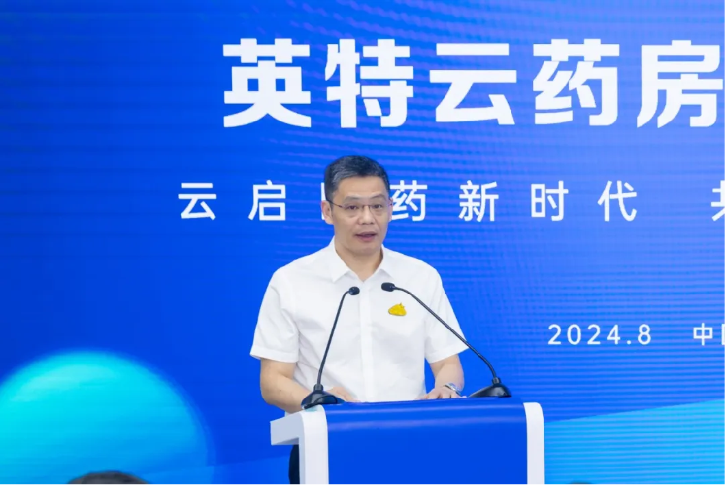 汪洋作“英特云藥房”項目介紹。領導嘉賓共同為“英特云藥房”項目啟動儀式按下啟動鍵,點亮醫藥服務的智慧駕駛艙。